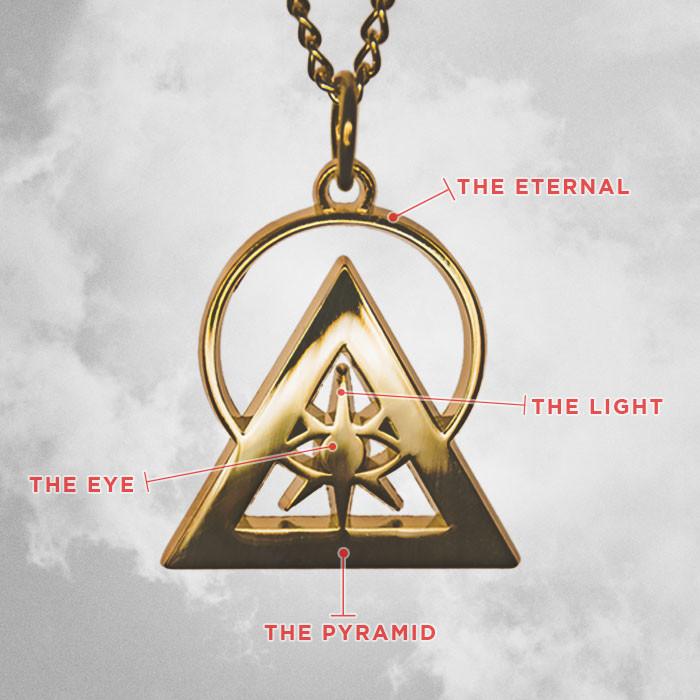 Crafted in polished wood with the Illuminati’s symbol laser engraved on its lid, the Trifecta Elite pyramid holds the Illuminati Talisman in gold, silver rhodium, and black (available only in this edition).